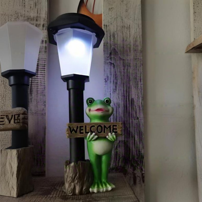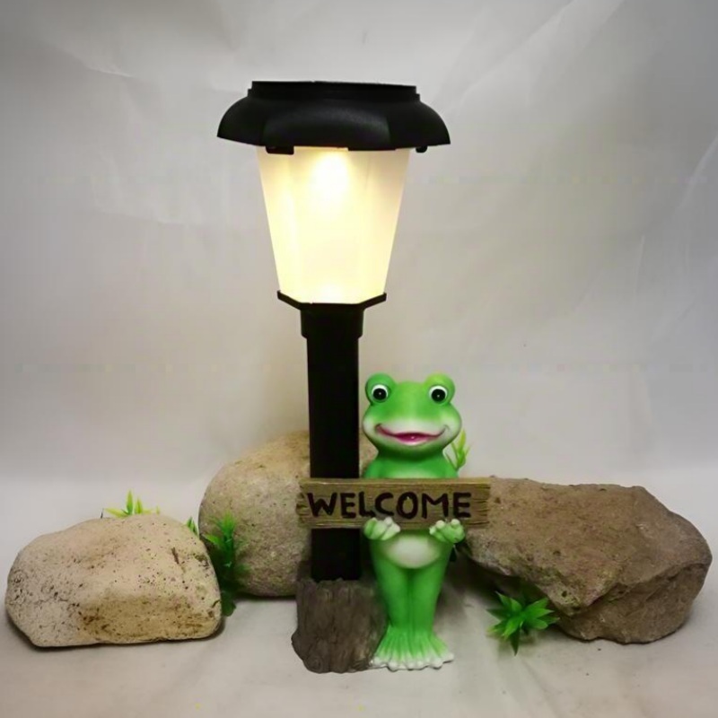 SM221182 Resin Frog with Welcome Sign Freestanding Solar Light