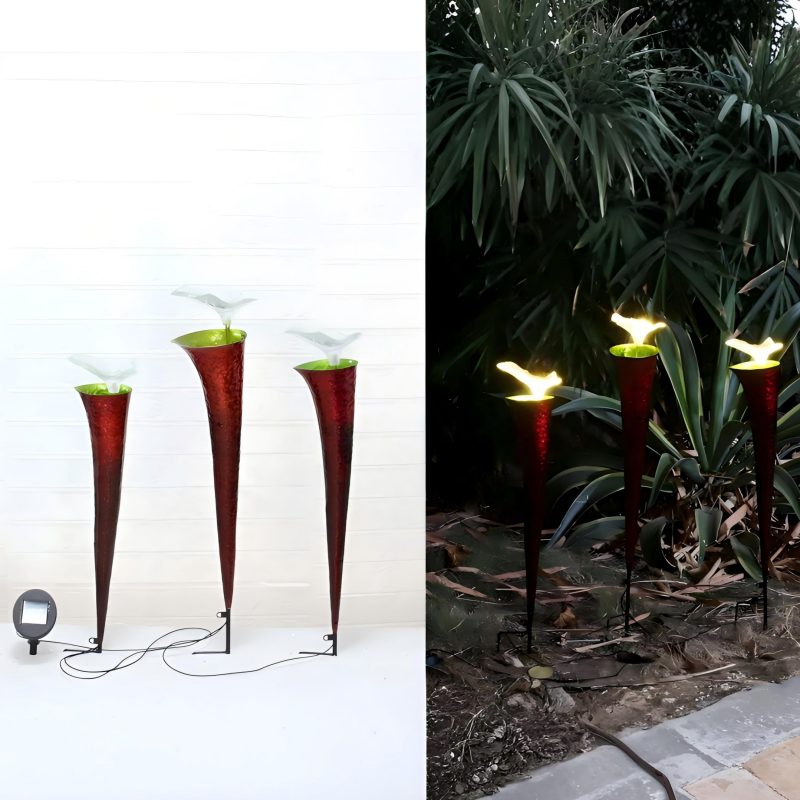 SM23440 Set of 3 Metal Iron + Fiber Solar Garden Stake Lights