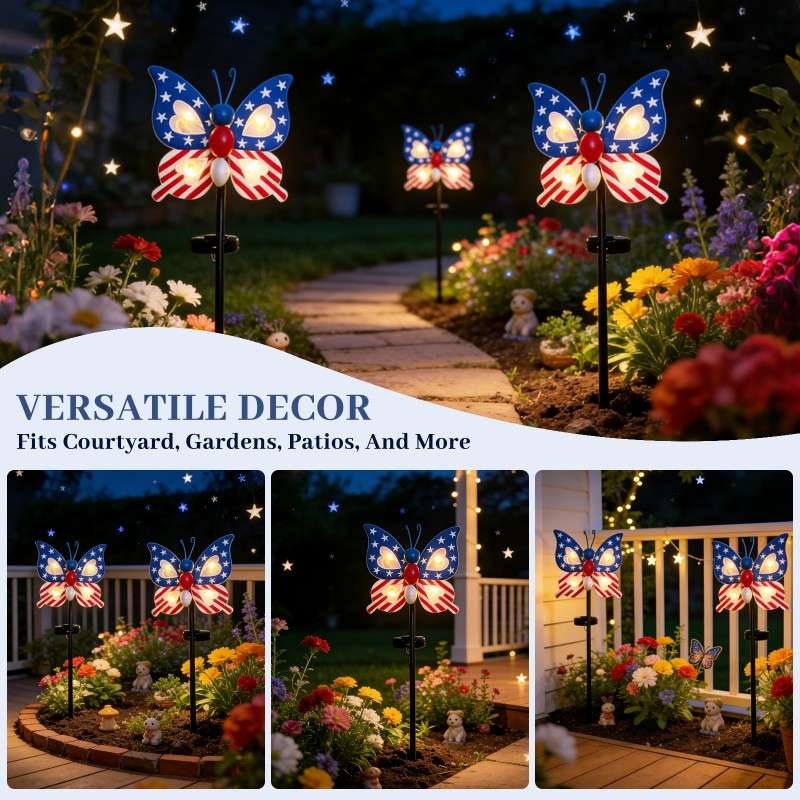 SM25806 Metal Ironwork American Patriotic Butterfly Solar Stake Light