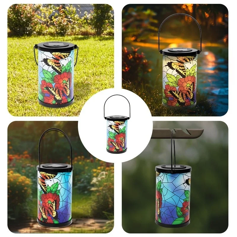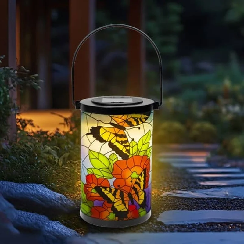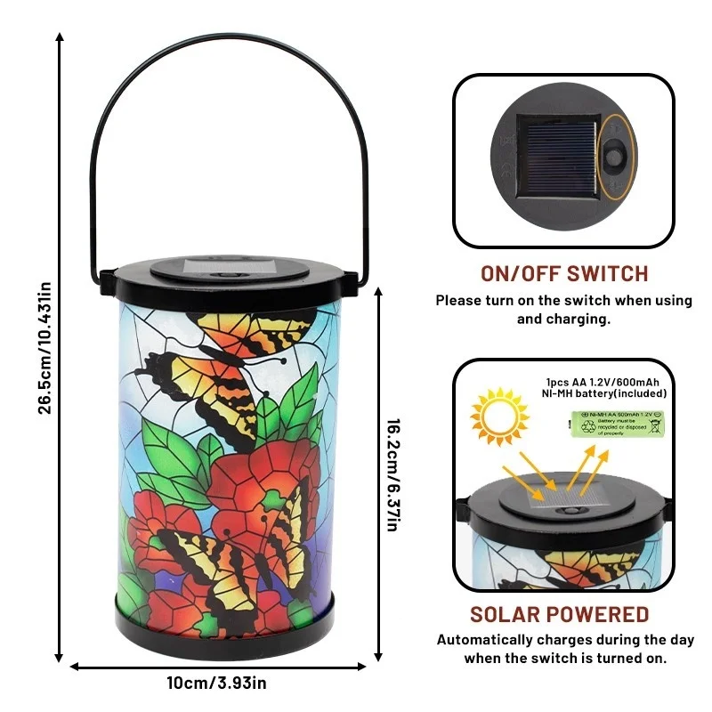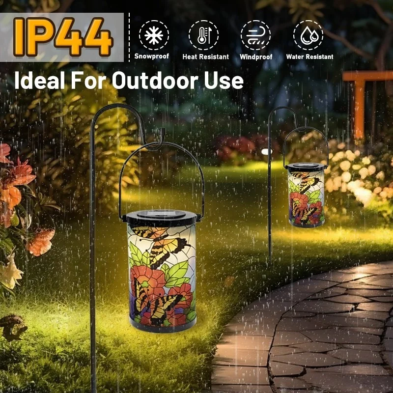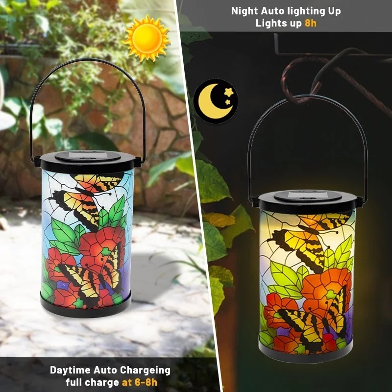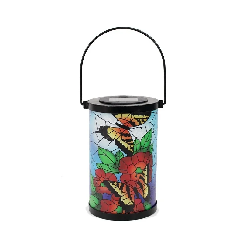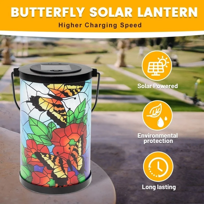 SM24952 Glass Butterfly Solar Lantern Hanging Light with Metal Iron Animal Design