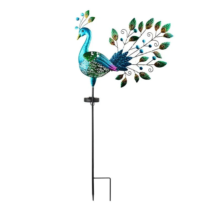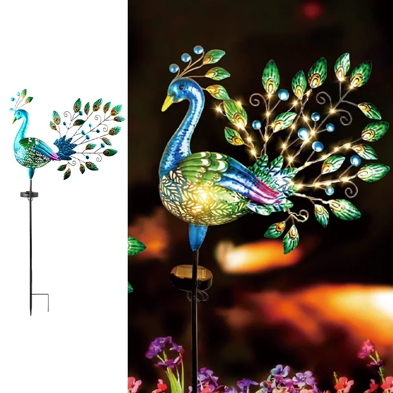 SM24906 Glass+Metal Iron Decorative Peacock Solar Stake Light