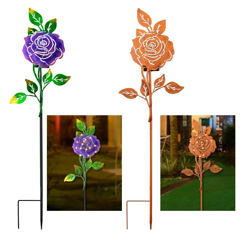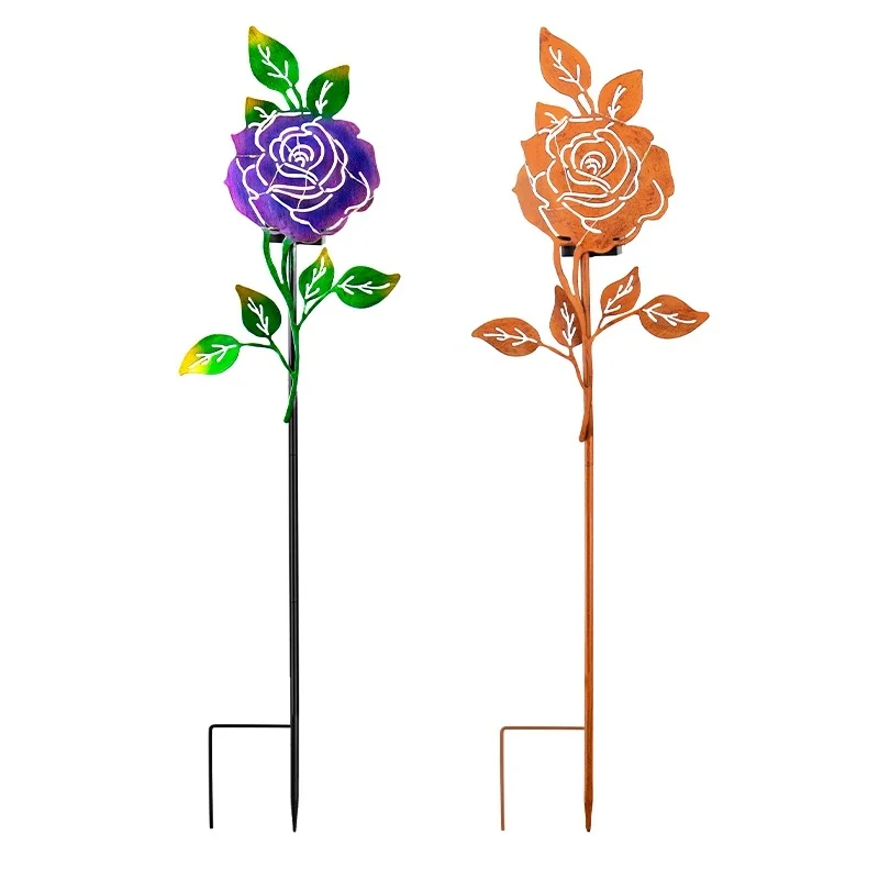 SM23602 Black Mini Textured Ornate PP Plastic Flower Solar Stake Light