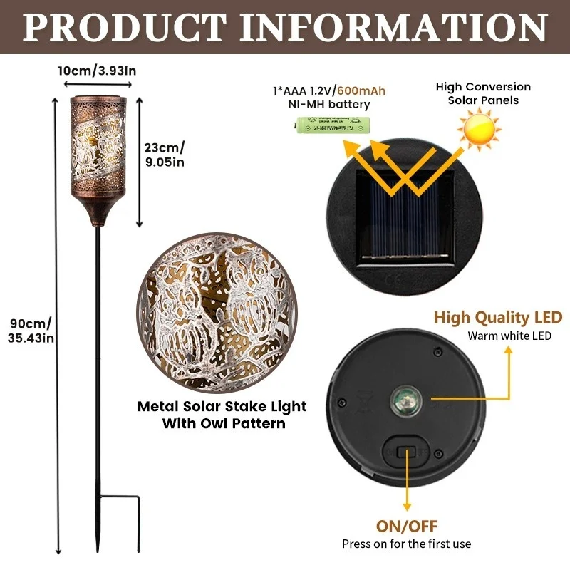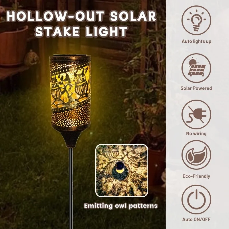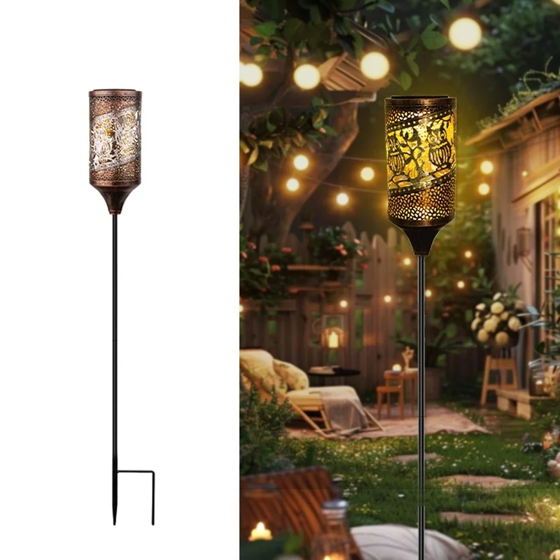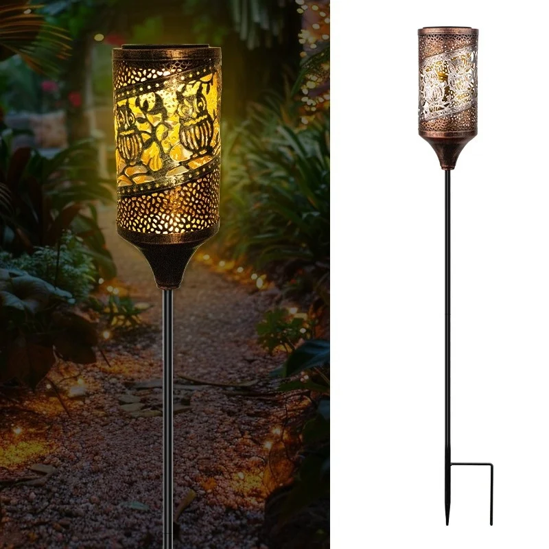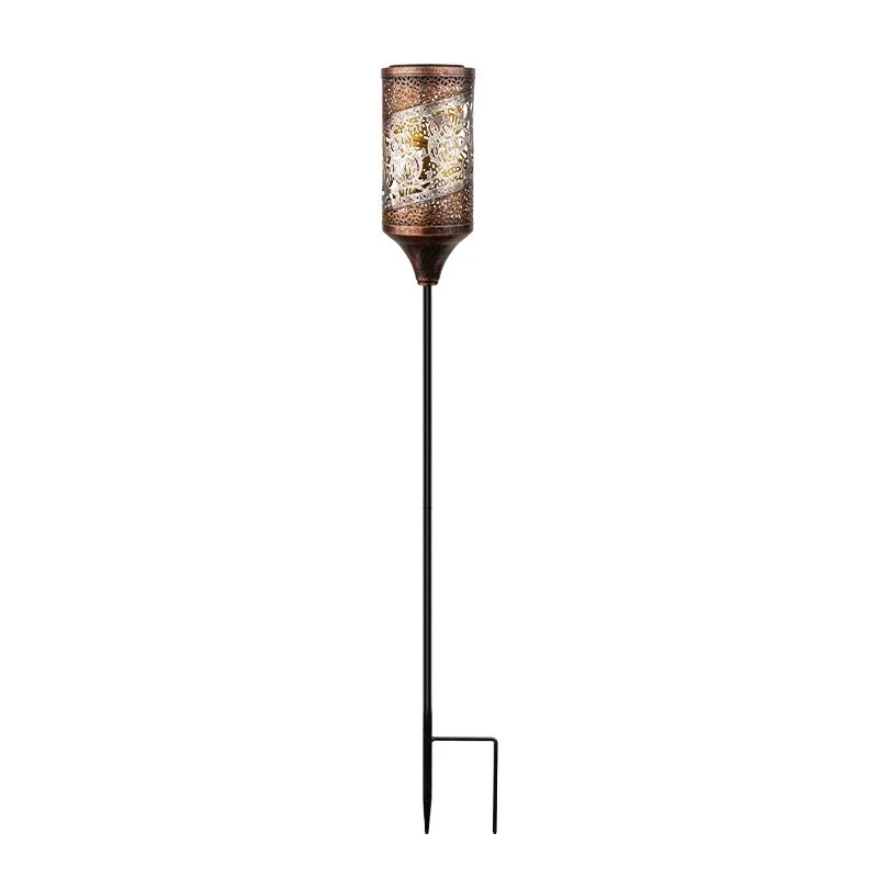 SM24916 Glossy Medium Copper PP Plastic Hollow-Out Solar Stake Lantern Light
