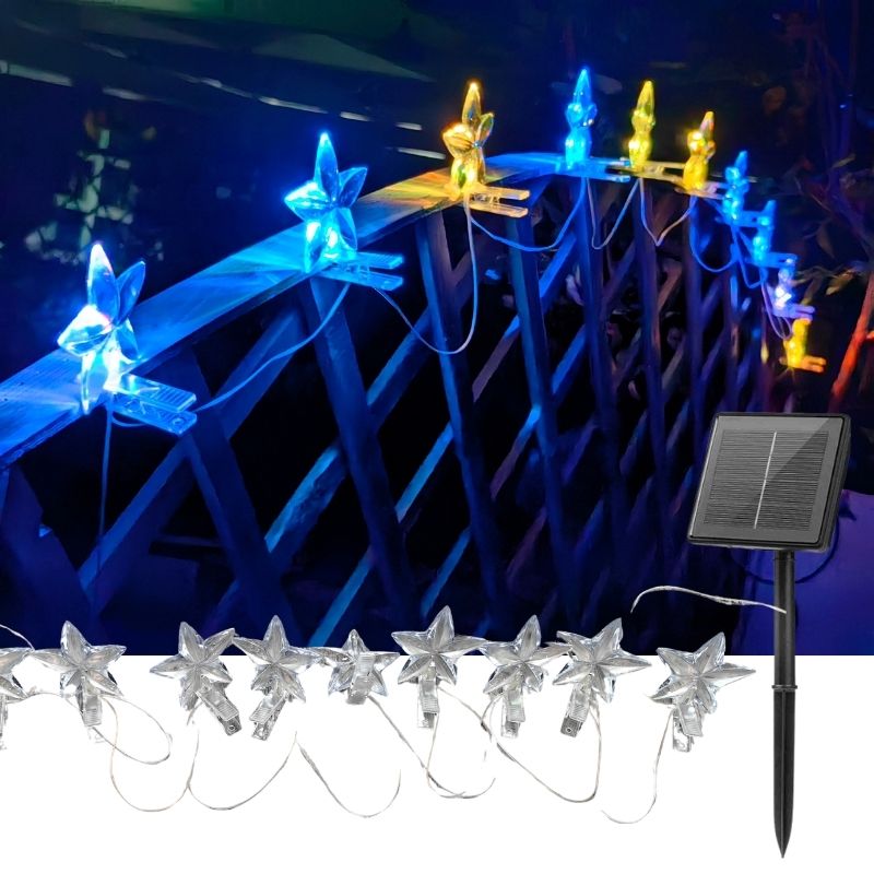SM231017 10LED Star Solar Clip String Light for Fence & Holiday Decoration
