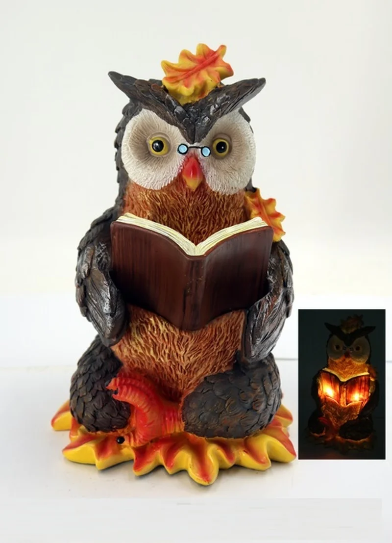 SM23631 Resin Owl Freestanding Solar Bird Statue