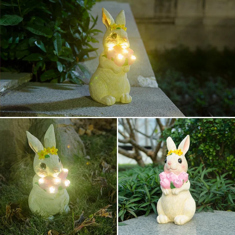 SM24026 Resin Rabbit Freestanding Solar Statue with Light