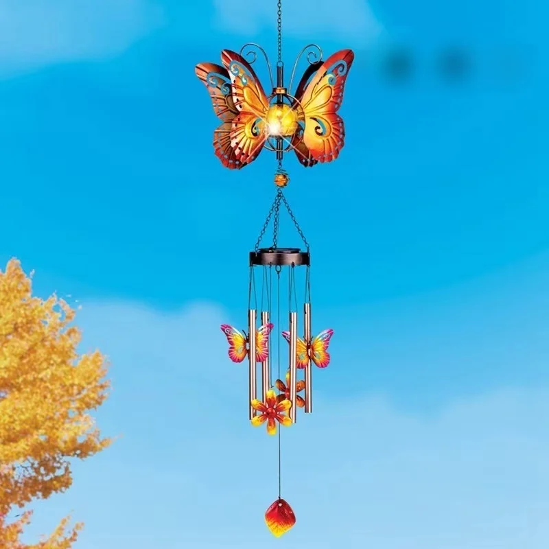 SM24434 Solar Hanging Light with Metal Iron and Glass Butterfly Wind Chime Animal