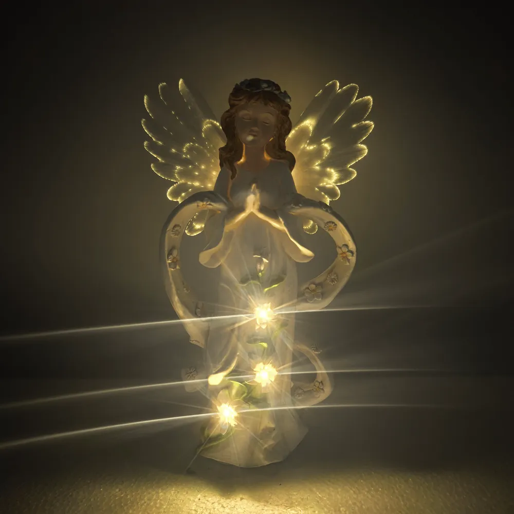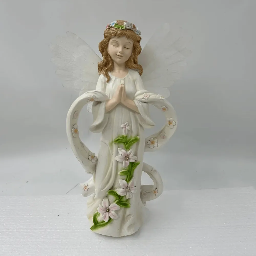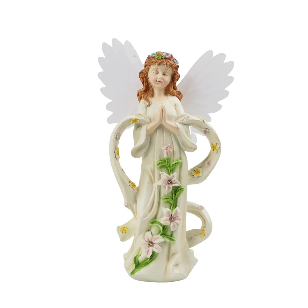 SM251066 Resin, Fiber Optic Solar-Powered Flower Angel Statue
