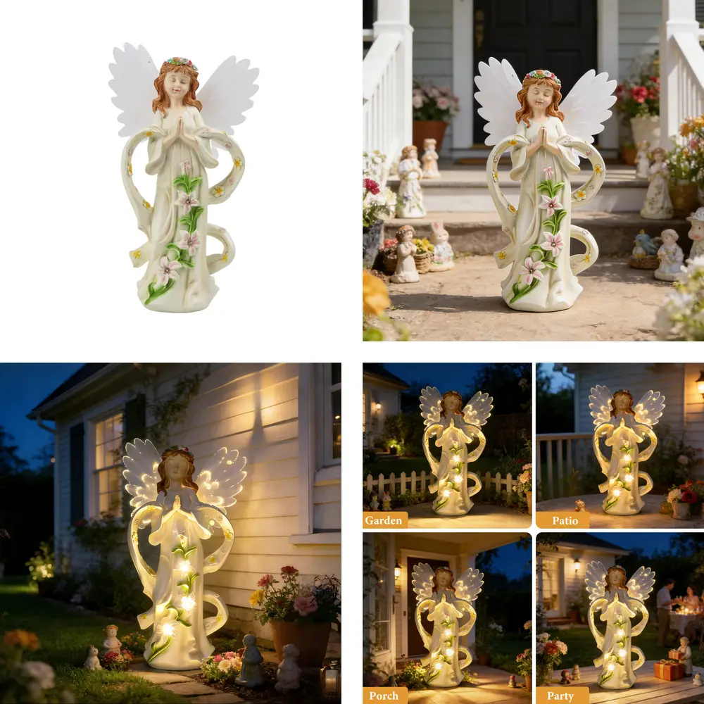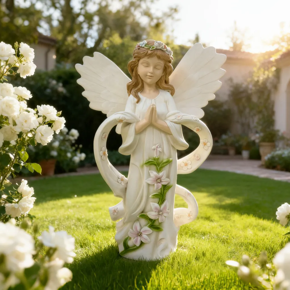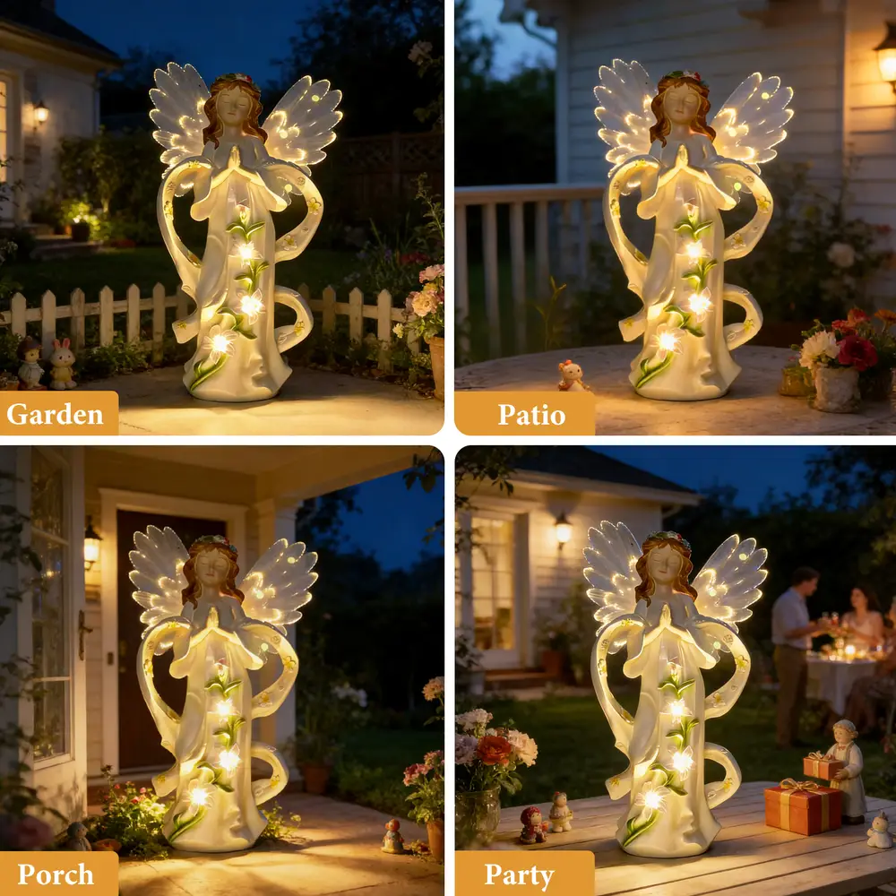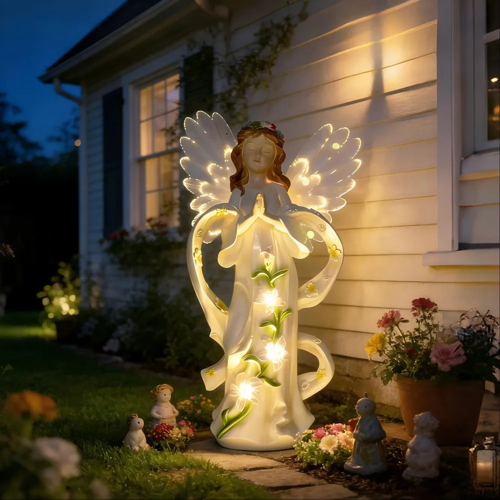 SM251066 Resin, Fiber Optic Solar-Powered Flower Angel Statue