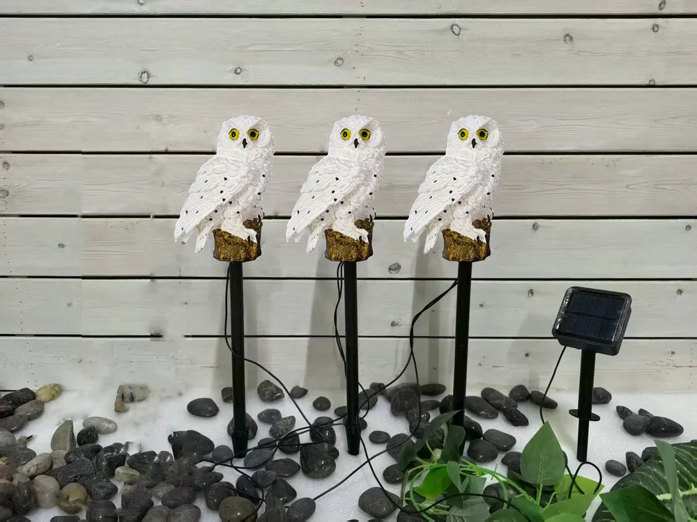 SM251250 Resin Three-headed Owl Solar Stake Light