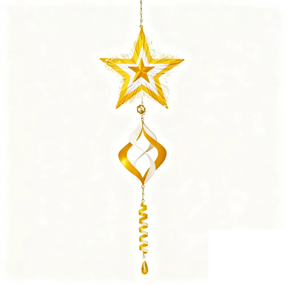 SM251317 Solar Star Hanging Wind Spinner with Fiber Optic