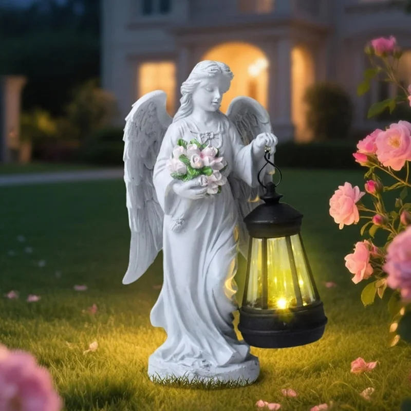 SM25997 Solar Resin Statue – Angel Holding Bouquet with Freestanding Light