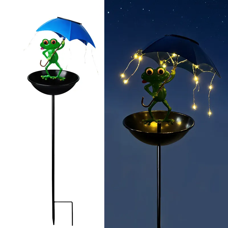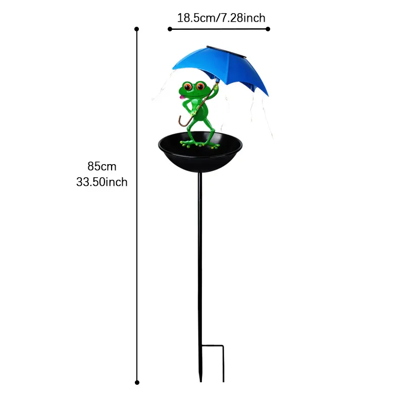 SM26027 Iron Umbrella Frog Solar Birdbath Stake Light